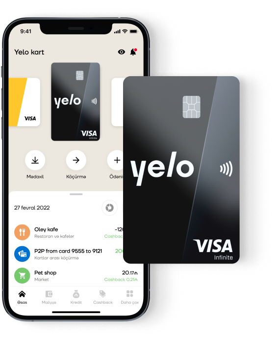 Yelo Premium Visa və Yelo Infinite Visa kartlarınla hər yerdə hər zaman öz yüksək statusunu vurğula. Böyük üstünlükləri olan bu kartlar həyatının bir parçasına çevriləcək.