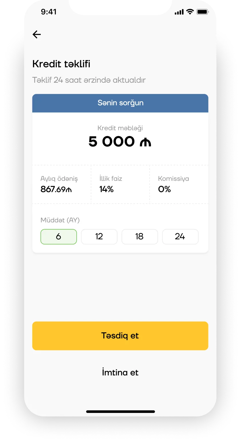 Bir neçə dəqiqə ərzində kreditin təsdiqi
