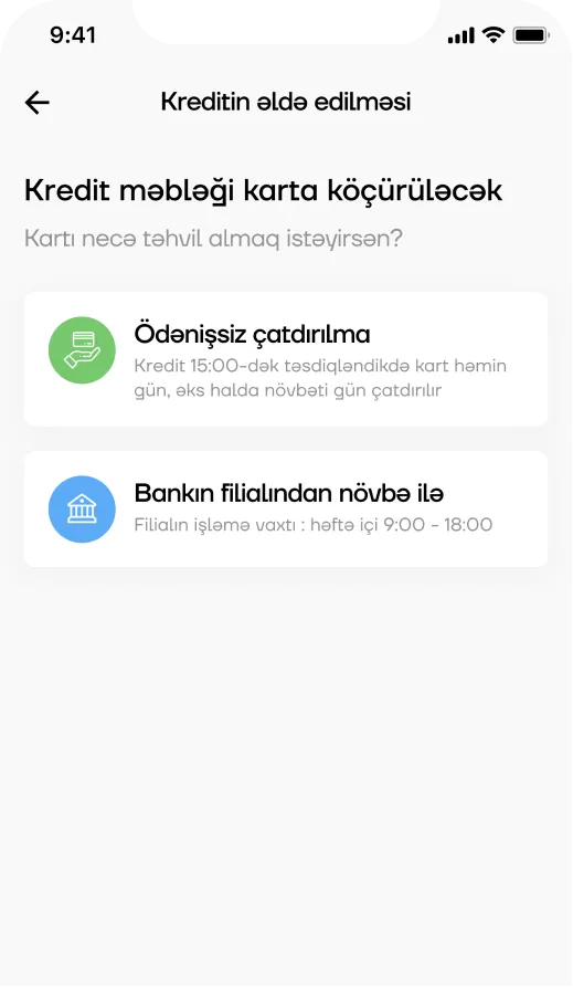 1 - 3.5%Kreditin kart ilə ünvana çatdırılması